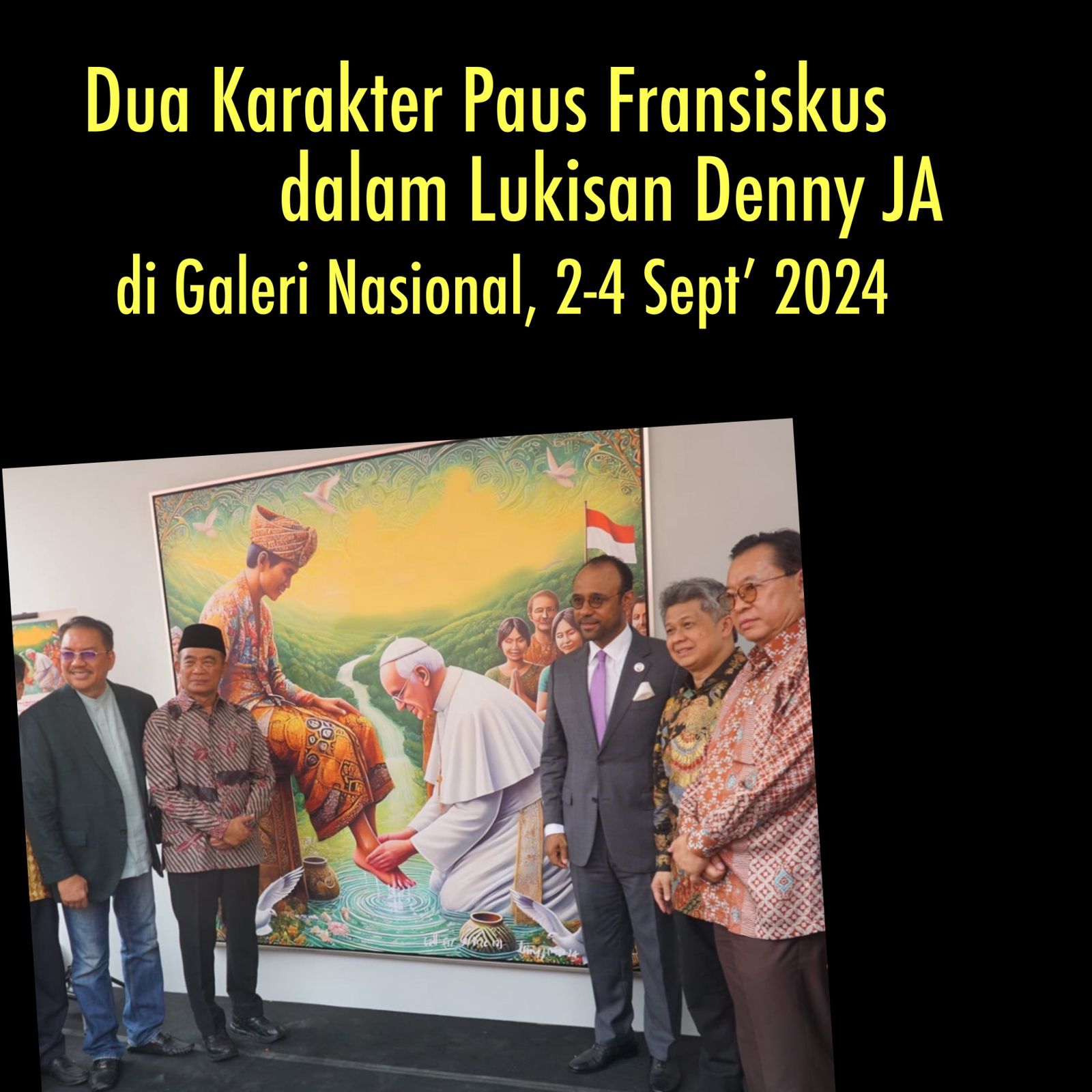 Itu yang saya katakan kepada wartawan, kolega, dan publik luas, ketika mereka bertanya. Apa arti penting pameran lukisan saya (Denny JA) di Galeri Nasional, Festival Toleransi, 2-4 September 2024, menyambut kedatangan Paus Fransiskus ke Jakarta.